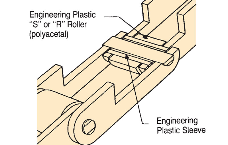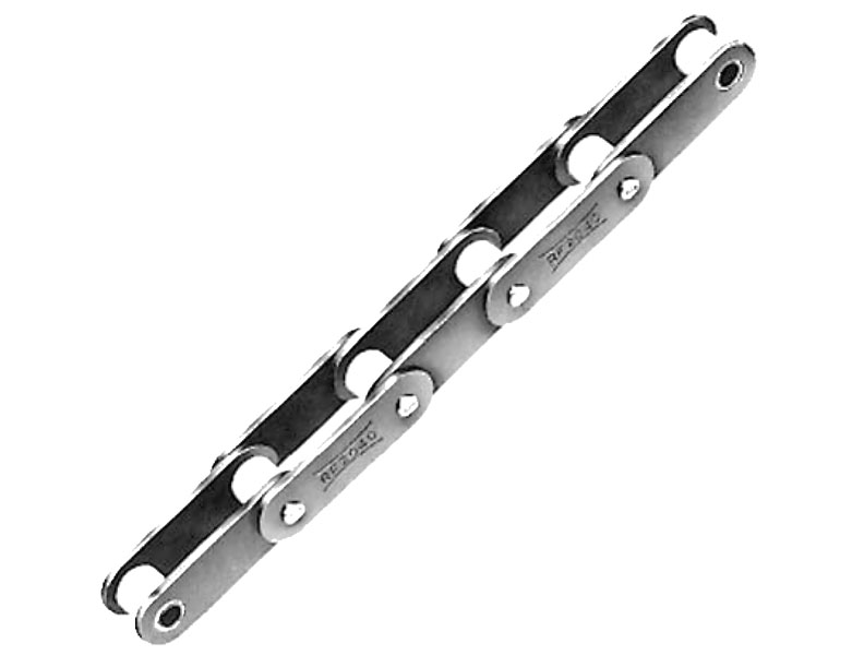 También disponemos de cadenas con aditamentos. Las dimensiones principales de la cadena y los acoplamientos son las de las cadenas de paso doble estándar.