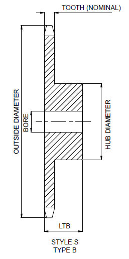 N.º 40, estilo B, diámetro interior sin terminación de 0,625"