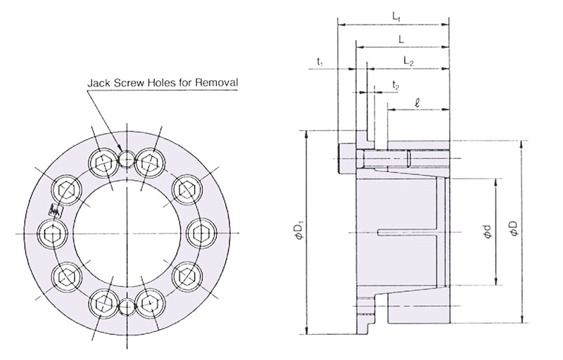 t1 - Tolerancia del diám. del eje |