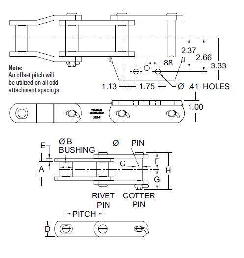 | 26703 | Marca N/D Titan XL de Tsubaki | Tipo de pasador N/D Con chaveta | Separación entre aditamentos N/D 3L | Paso N/D 4.000 in | Carga operativa máx. N/D 6300 lb | Peso N/D 8.00 lbs/ft | Pasos por pie N/D 3.00 in |