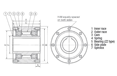 | MZ30-22 | Tamaño de diámetro interior N/D 22.00 mm | Chavetero del diámetro interior N/D 6 mm × 2,8 mm | Capacidad de torque N/D 542.1 lb·ft735.0 N·m | Torque de arrastre N/D 0.288 lb·ft0.39 N·m | Sobremarcha máx. del eje N/D 1800 r. p. m. | Sobremarcha máx. del anillo exterior N/D 500 r. p. m. |