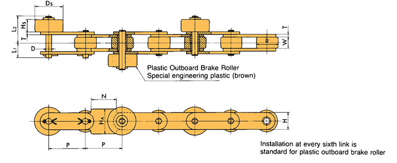 Serie de cadenas de rodillos externos - Rodillo lateral