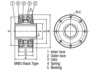 A embreagem com came da série BREU é comumente usada em aplicações de contrarrecuo que exigem maior velocidade de giro livre do anel interno e capacidade baixa a média de velocidade de engate. A embreagem com came da série BREU é popular entre OEMs e usuários finais, utilizando uma ampla variedade de acessórios de montagem e a capacidade de selecionar posições de rasgo de chaveta no anel externo e interno, a fim de oferecer flexibilidade de montagem. A série BREU incorpora um came com estilo "lift-off" que aumenta a vida útil da embreagem com came. Veja mais detalhes na página 8. A embreagem com came da série BREU é fornecida pré-lubrificada com graxa.
