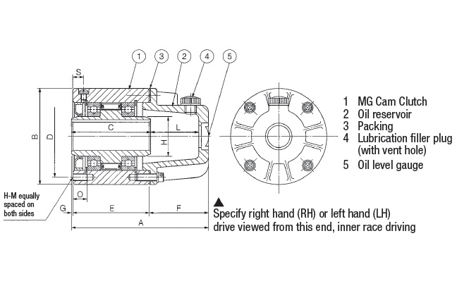 Em aplicações de contrarrecuo em que a embreagem com came é usada com anel interno contínuo e giro livre de velocidade intermediária, a embreagem com came da série MGUS pode ser equipada com um reservatório de óleo, criando a série MGUS-R. A capacidade adicional do reservatório de óleo juntamente com as aletas de refrigeração integrais aumenta o tempo entre os intervalos de serviço, permitindo o livre fluxo de óleo entre o reservatório e a embreagem. Um medidor com visor embutido no reservatório permite a verificação em tempo real do nível do fluido e as condições gerais do óleo de lubrificação.