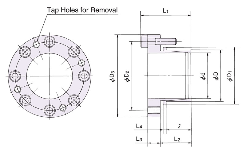 t2 – Tolerância de DI da conexão do cubo |