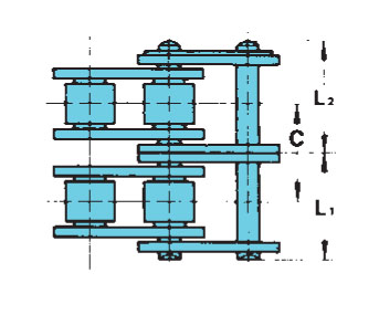 - 1 A largura entre as placas de conexão do rolo (W) é um pouco menor do que no padrão ANSI, mas essa corrente é operada com rodas dentadas padrão.